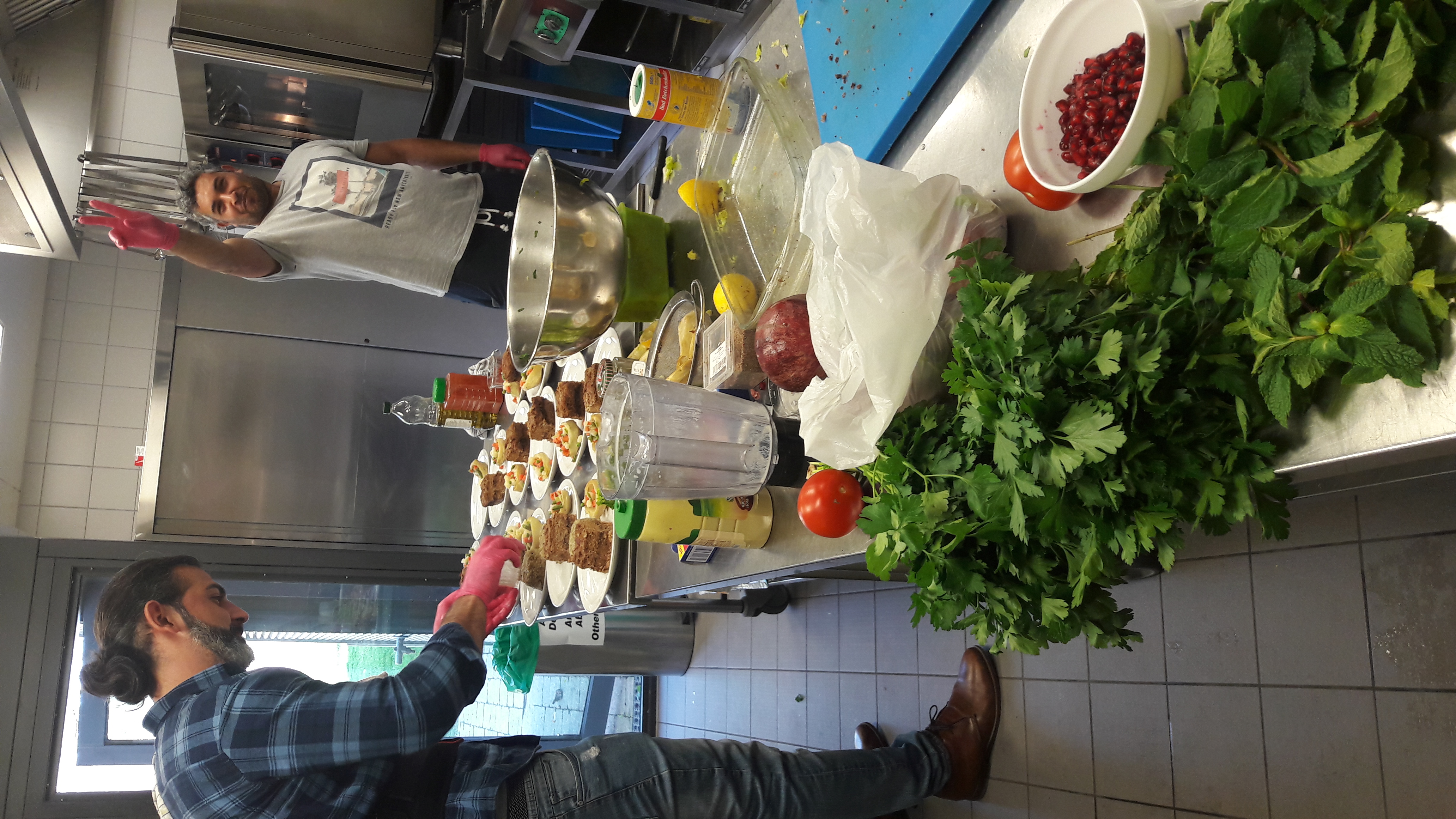 Wafa Abo Zarifa and Ayman Natouf, graduates of Sleeves Up Workshops, prepared a tasty Palestinian and Syrian lunch.