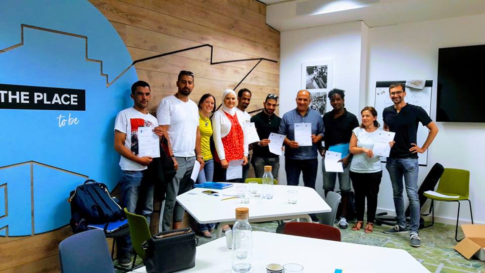 Nine participants (8 from Syria & 1 from Nigeria) successfully completed the third round of Sleeves Up Training Workshops for DPI & BPI at Nyuko, near Luxembourg Gare. They worked on a business project intended to eventually provide a means of self-employment in their new Luxembourgish homes.