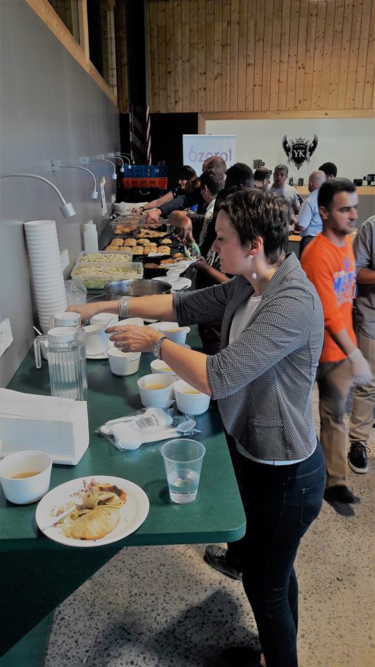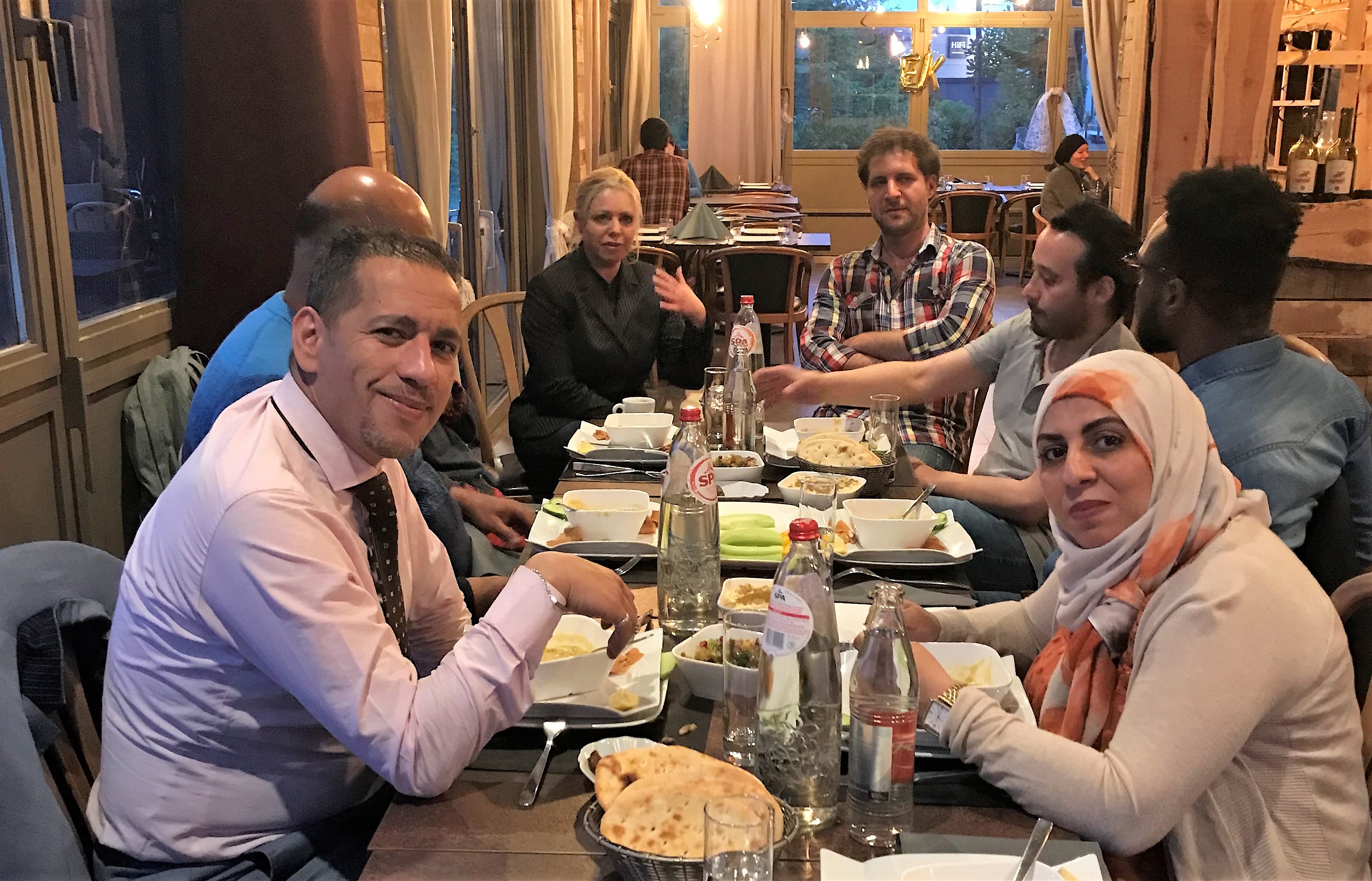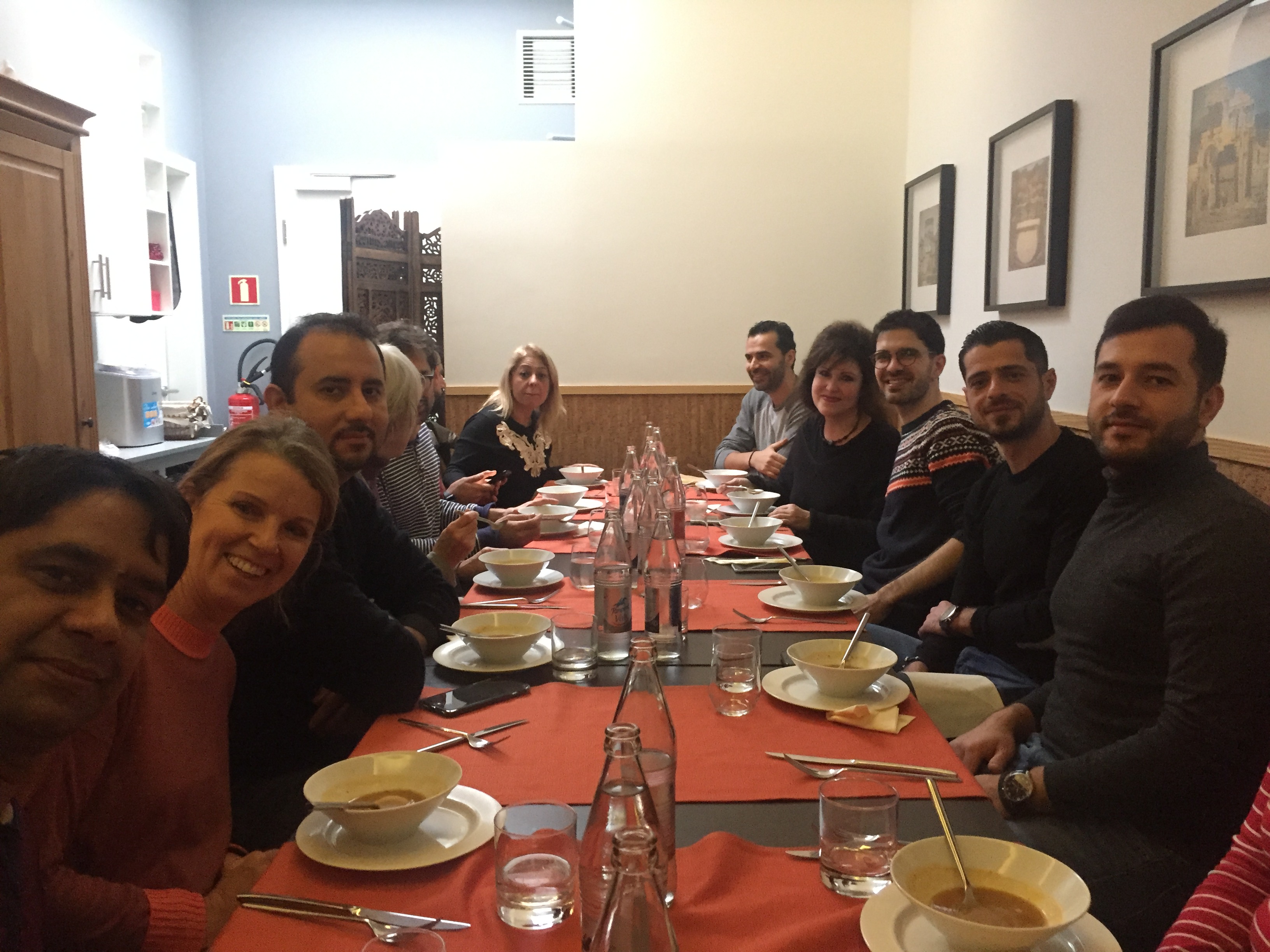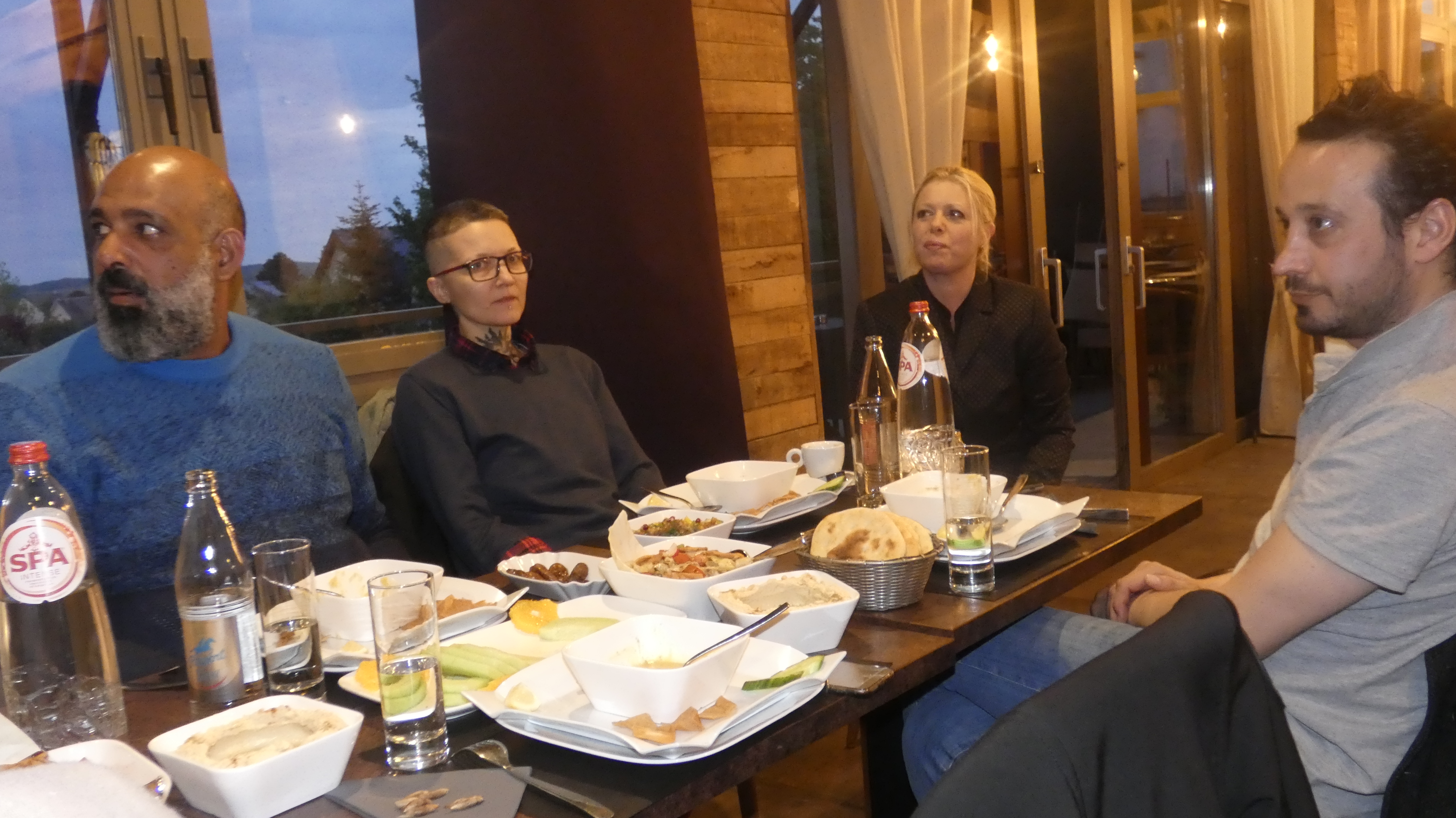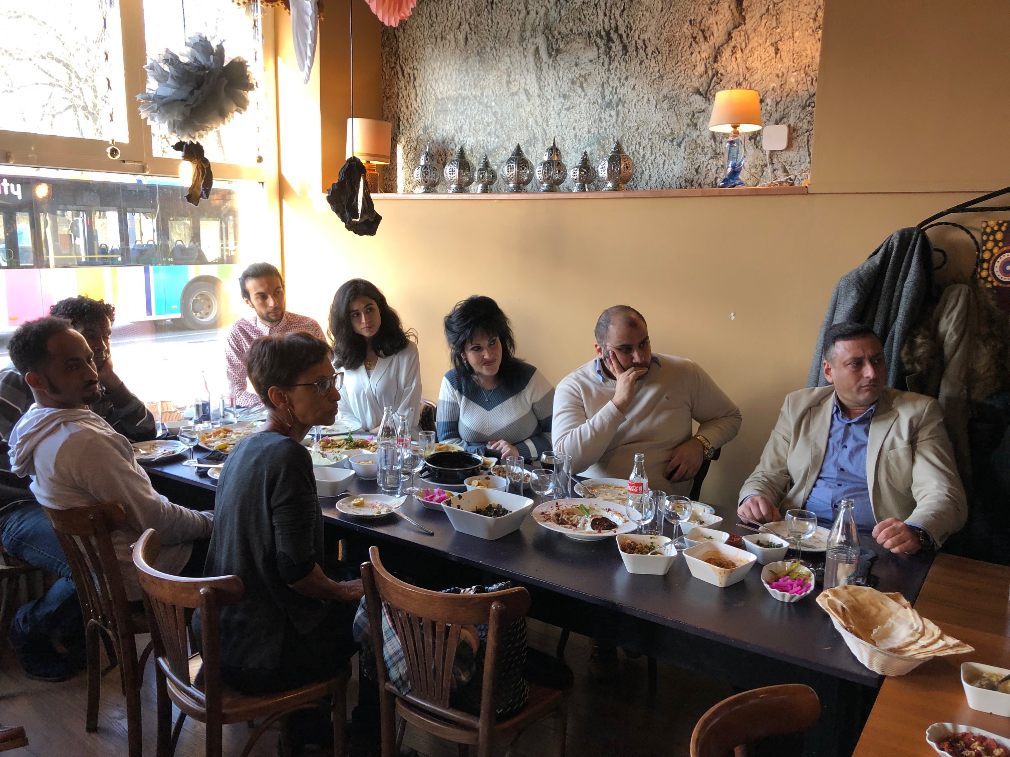 Eighteen participants attended the event, which included a sumptuous meal prepared by Mohammed Arak, Salwah Arak, Shady al-Halabi, and Mahmoud Yasen Aljameel. Mohammed and Shady both participated in Sleeves Up workshops and intend to launch a HORECA business.