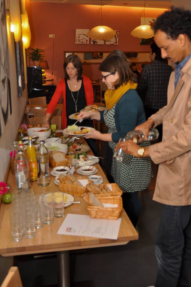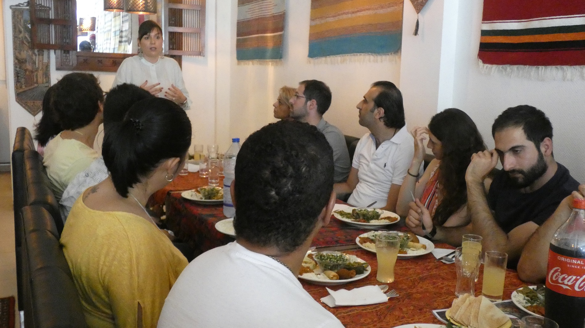 Mustafa and Ahmed explained why they decided to take over a business instead of starting a new one, differences in terms of procedure, and difficulties and opportunities they encountered. There were sixteen participants in total, many of whom posed questions and actively participated in the discussion. A tasty lunch plate, filled with Sahara's top culinary choices, accompanied the event.