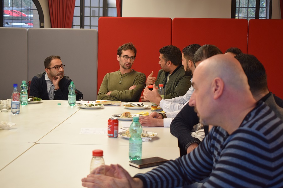 On May 11, 2017, Caritas invited project Sleeves Up to Foyer Marienthal to speak about setting up a business in Luxembourg. Many of the participants once had restaurants, cafés or bakeries in the Middle East, and they wished to establish similar businesses in Luxembourg. The conversation - conducted in Arabic - focused on how to obtain a business permit for food-related commercial activities, as well as the importance of learning either French, Germany, Luxembourgish, or English for pursuing a commercial activity in Luxembourg.